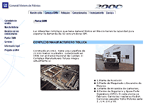 Versiones 1999 y 2000 del sitio corporativo de General Motors de México. Fue la transición entre el web hecho todo a mano, y las páginas generadas dinámicamente, para ofrecer servicios de cotización y localización de vehículos.