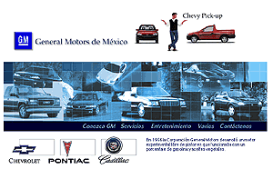 Versiones 1999 y 2000 del sitio corporativo de General Motors de México. Fue la transición entre el web hecho todo a mano, y las páginas generadas dinámicamente, para ofrecer servicios de cotización y localización de vehículos.