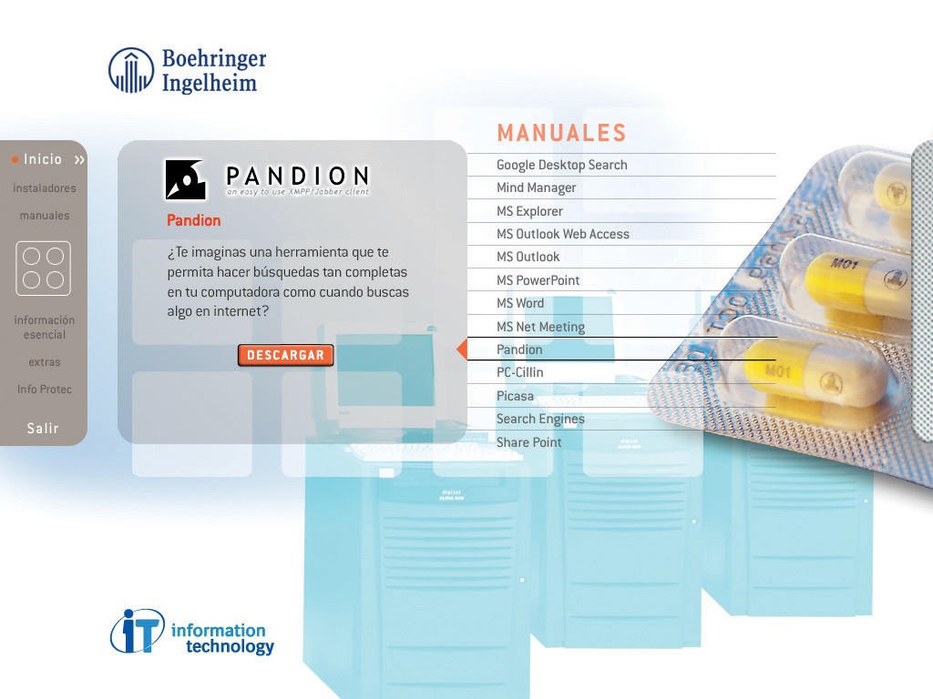 CD interactivo con recursos del área de TI de Boehringer Ingelheim México.