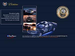Versión 2000 del sitio web de Cadillac México. La información se concentró en los 4 autos de la serie, y se ofrecían calculadoras, cotizadores y localizadores de vehículos.