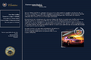 Versión 2000 del sitio web de Cadillac México. La información se concentró en los 4 autos de la serie, y se ofrecían calculadoras, cotizadores y localizadores de vehículos.